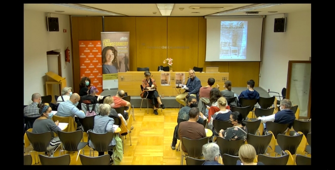 La clave de este formato es la invitación permanente al público a que entre en la conversación en cualquier momento y en esta ocasión fue mucha la participación de una sala concurrida y abierta también a la conexión en streaming, donde participaron también entre el público los voluntarios del programa de personas sin hogar y de salud mental.