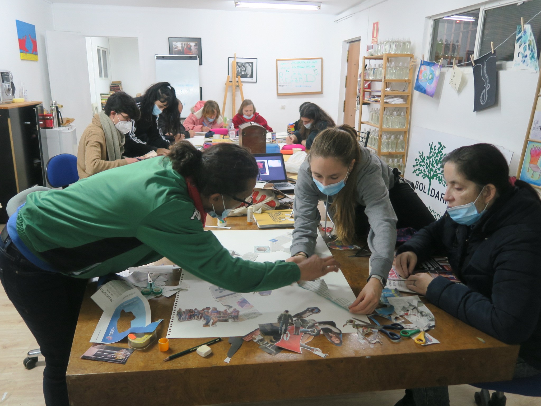 En este caso, coordinado por Solidarios, el taller lo imparte María Angulo, con el apoyo de Fátima Nader, junto con el equipo de voluntarios y voluntarias. Y las normas son: experimentar y mirar (sensibilidad), reelaborar (imaginación) y comunicar (generar conocimiento).