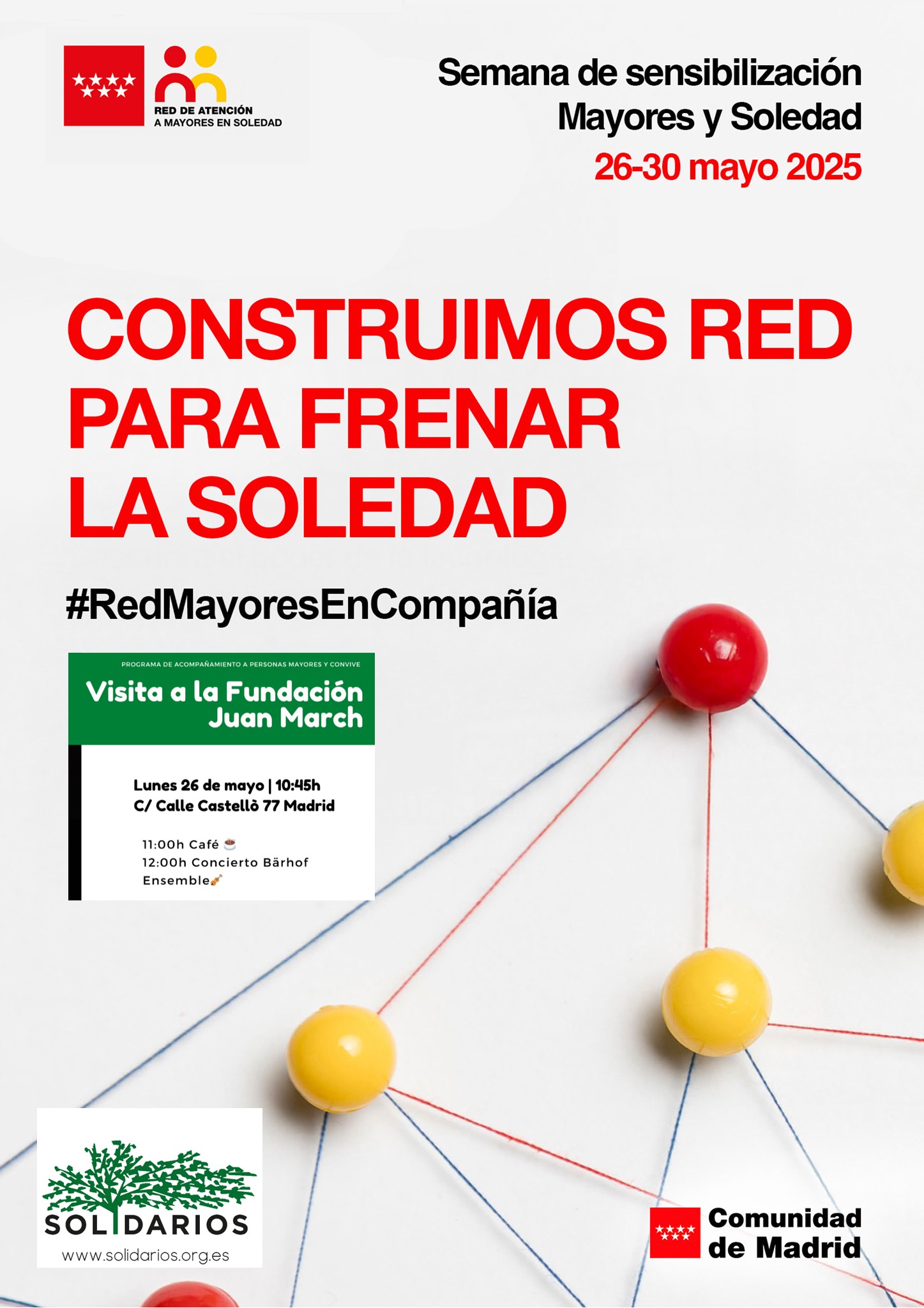 Solidarios participa en la Semana de sensibilización Mayores y Soledad -del 26 al 30 de mayo- como parte de la Red de Atención a Mayores en Soledad de la Comunidad de Madrid.