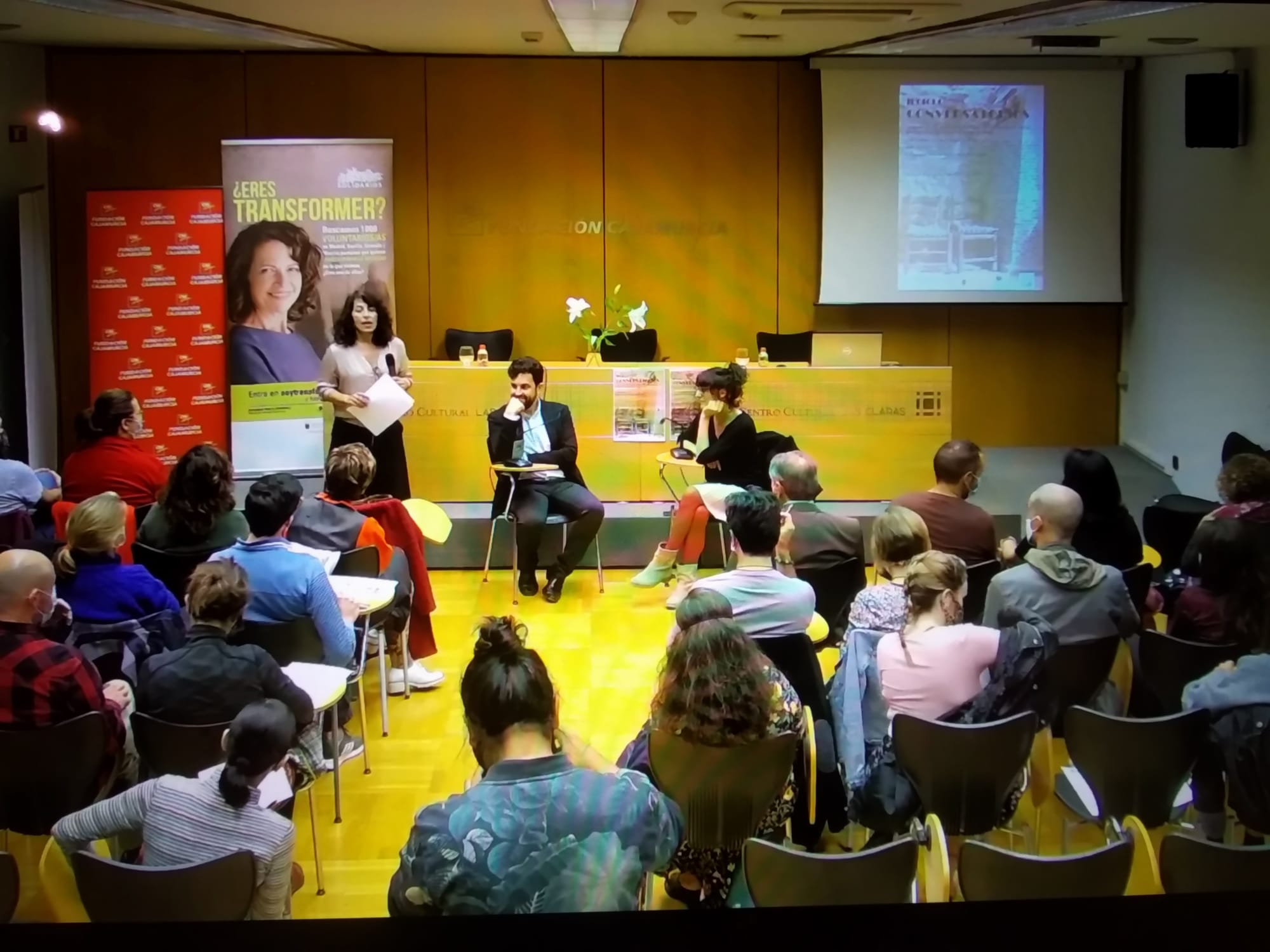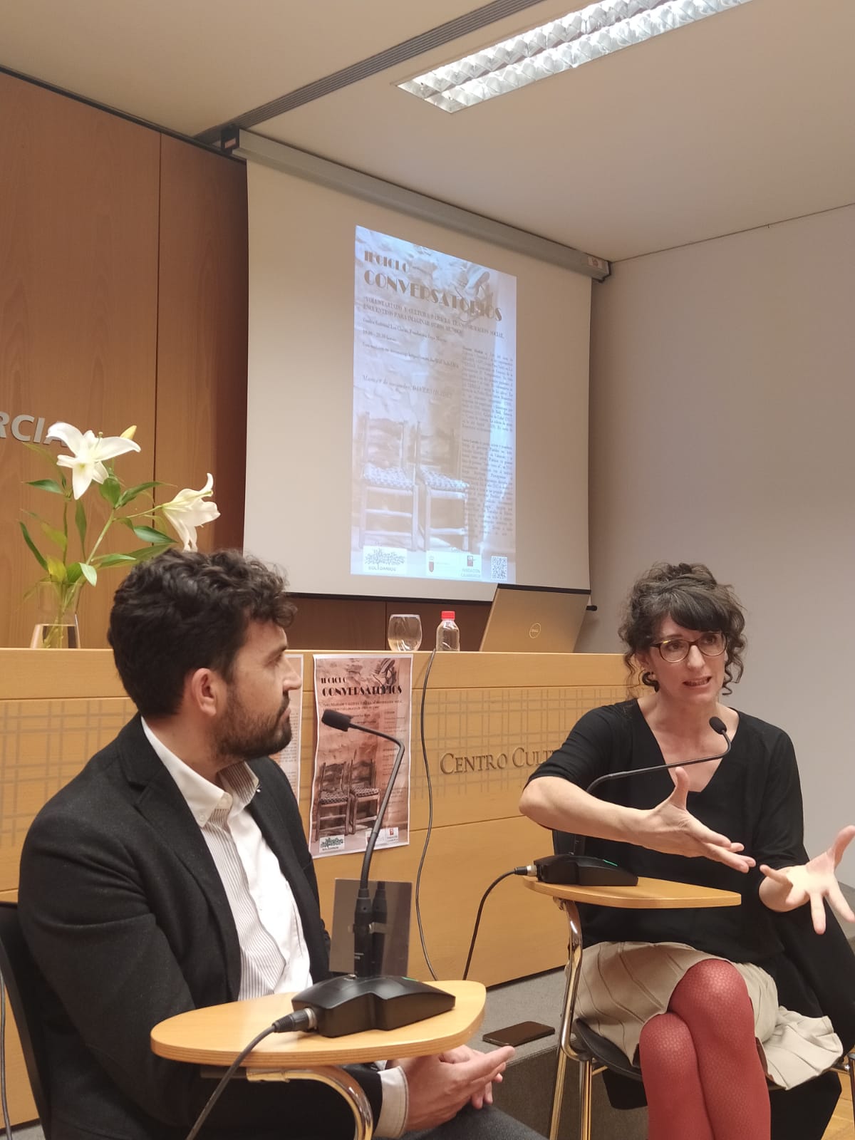 Con una gran asistencia se celebró el segundo conversatorio en Murcia, en el Centro Cultural Las Claras. Los ponentes de esta ocasión fueron Manuel Madrid, periodista del diario La Verdad, y Lucía Camón, poeta y actriz, directora y creadora del proyecto “Pueblos en arte”. Conversación fluida sobre DIVERSIDADES, definiendo lo que ambos entendían por diversidad.