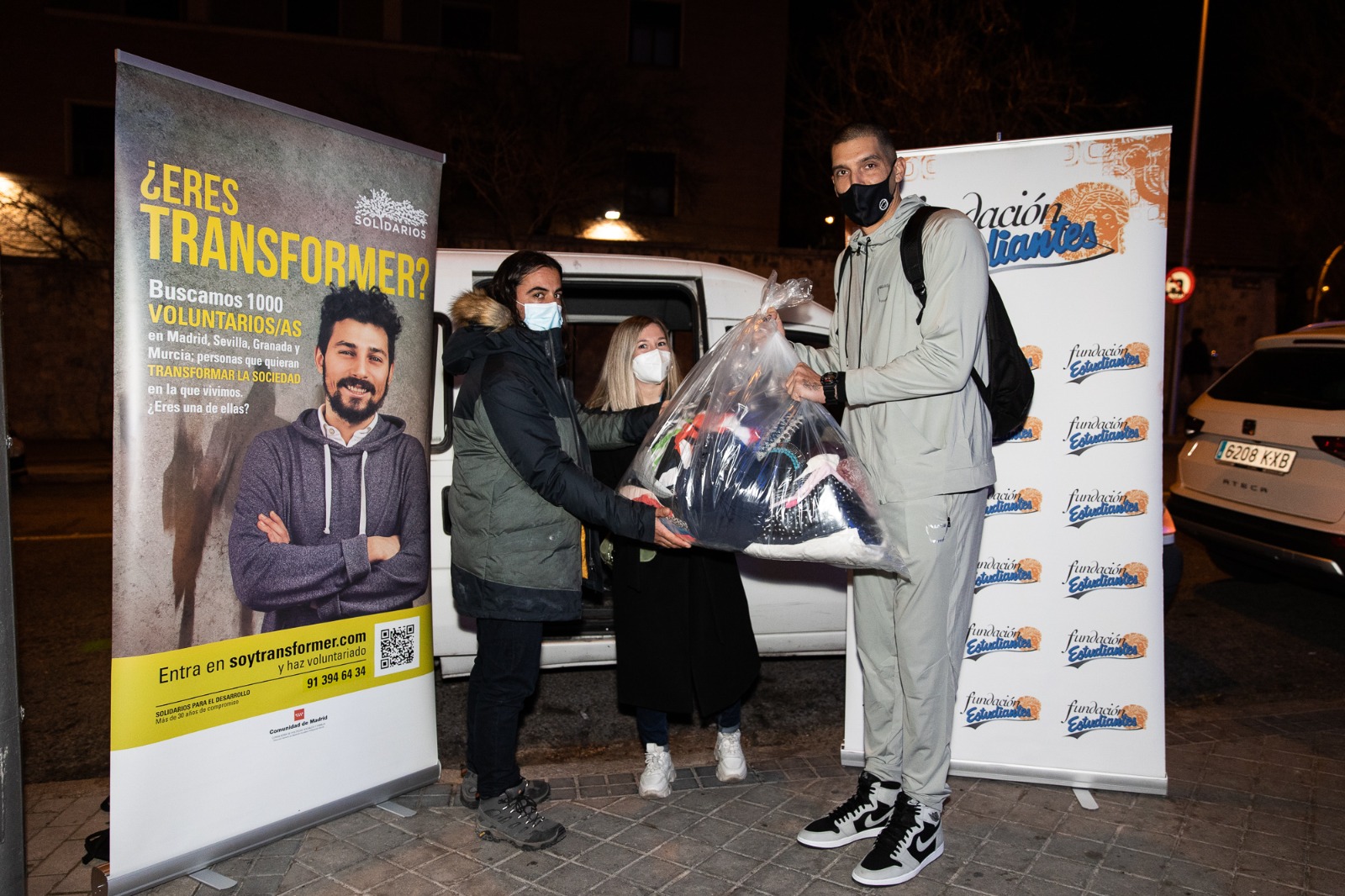 En la entrada del Magariños la furgoneta de Solidarios y sus voluntarios recogieron las donaciones de quienes iban a ver el partido y personalmente Nacho Martín se acercó para realizar su aporte y el del club Movistar Estudiantes. En total se han recogido 126 kilos de ropa que desde Solidarios será entregada en los recursos de personas sin hogar con los que trabajamos.