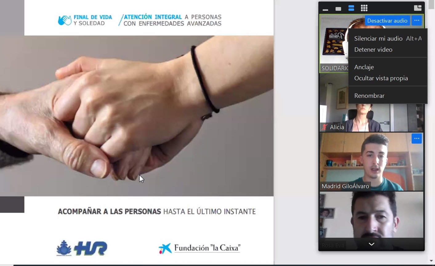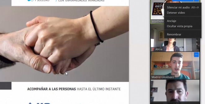 El primer paso para dar este apoyo ha sido la formación específica de 14 voluntarios y voluntarias que han recibido unas charlas sobre el manejo del duelo y las particularidades del acompañamiento en estos momentos de fin de vida. Desde el Hospital San Rafael de Madrid, se ha formado a estas personas que ya han comenzado a visitar los domicilios de pacientes que están en circunstancias de enfermedad avanzada, con el fin de aliviar su soledad y disminuir su sufrimiento. El voluntariado les ayuda a hacer balance, perder miedos, hablar, distraerse y poder expresar cosas que, tal vez, no son capaces con sus seres queridos o cuidadores cercanos.