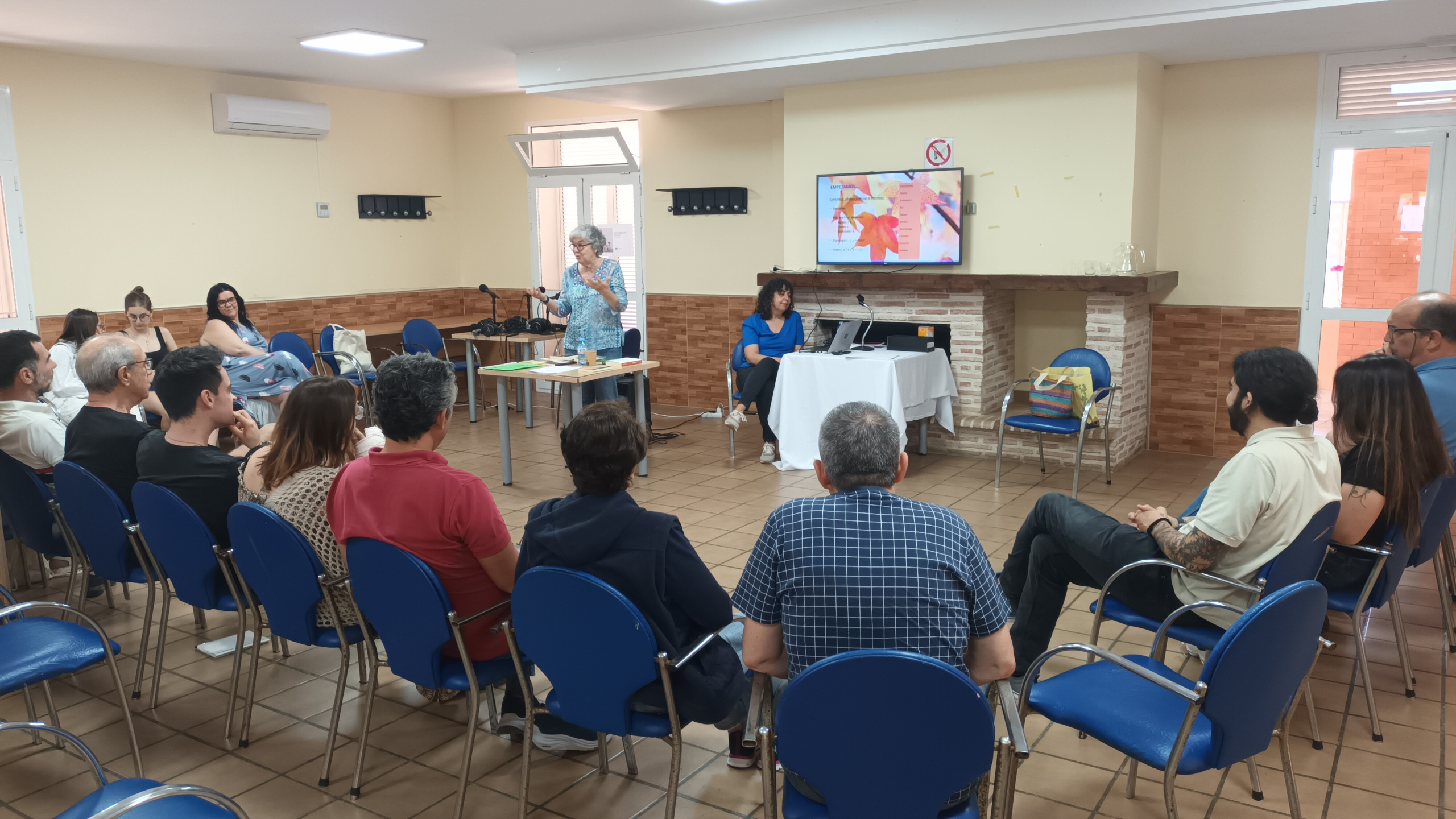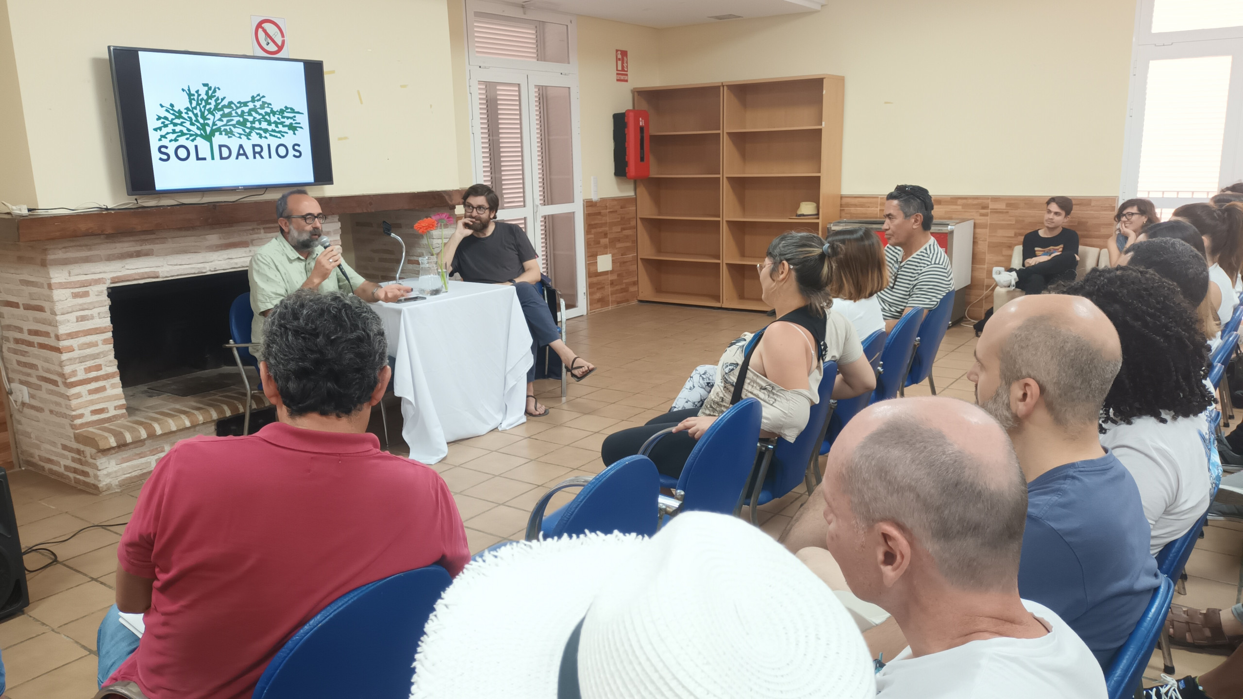 Iniciamos con el conversatorio “Una palabra propia” entre José Daniel Espejo, poeta, escritor, trabajador social y coordinador de Libros Traperos, y Félix Crespo, psiquiatra del programa de salud mental para adultos del Mar Menor. Una apuesta por la palabra como vehículo para el afecto, por el pensamiento que generamos en el encuentro con el otro, la palabra compartida nos lleva a lugares que en soledad no existirían. “La palabra es nuestra capacidad de proponer” exponía José Daniel Crespo, fundamental para la tarea del voluntariado que quiere proponer una sociedad distinta.