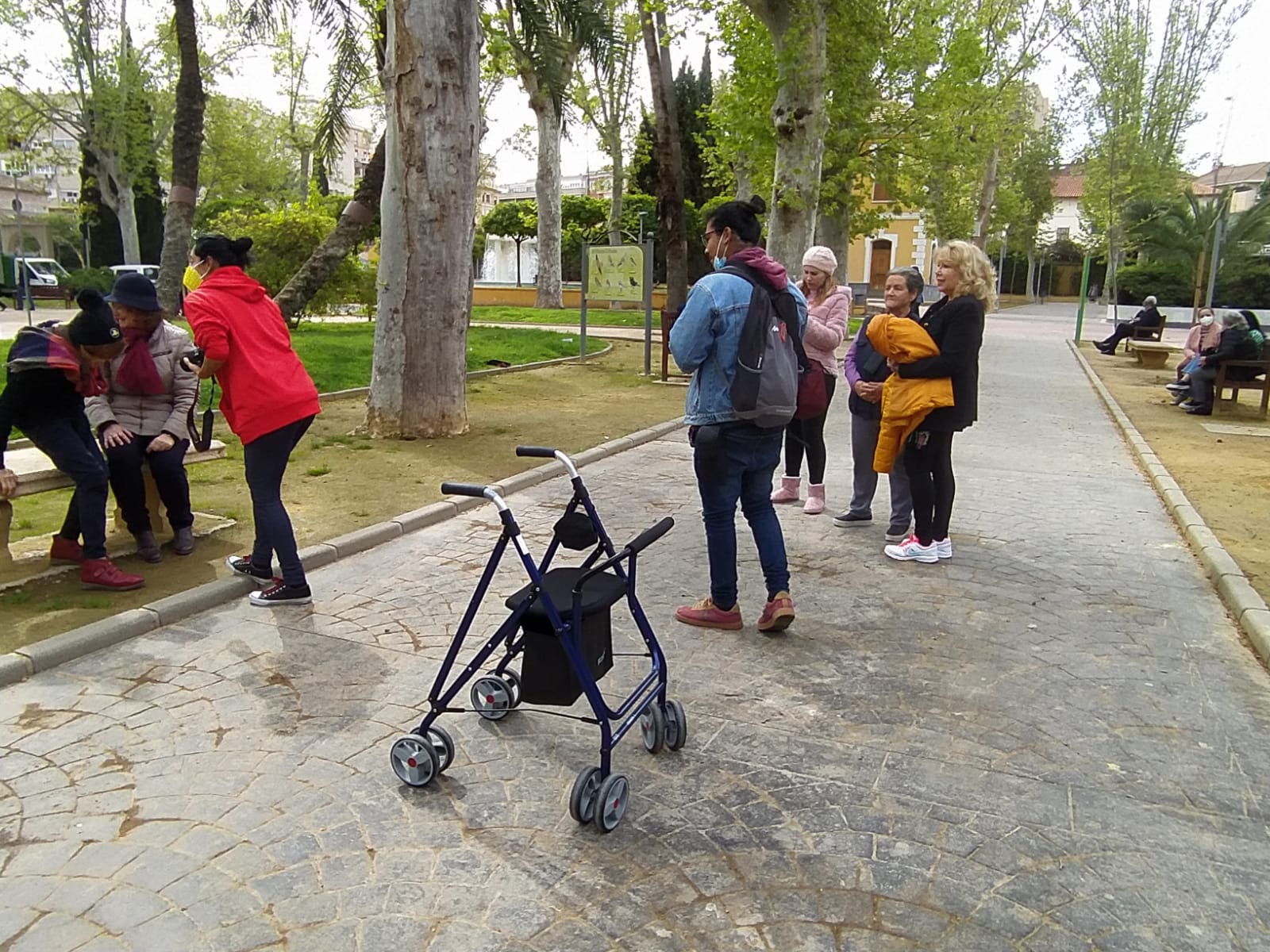 Los encuentros intergeneracionales son un espacio privilegiado para compartir entre las parejas de persona mayor y voluntaria: en este han participado Concha y Esther, Rosario y María, Mayte y Encarna, y Ángela que se animó, aunque su voluntaria no la pudo acompañar, igual que Leonor que no consiguió que Pepita saliera de casa para participar y se acercó ella a ver cómo era la actividad.