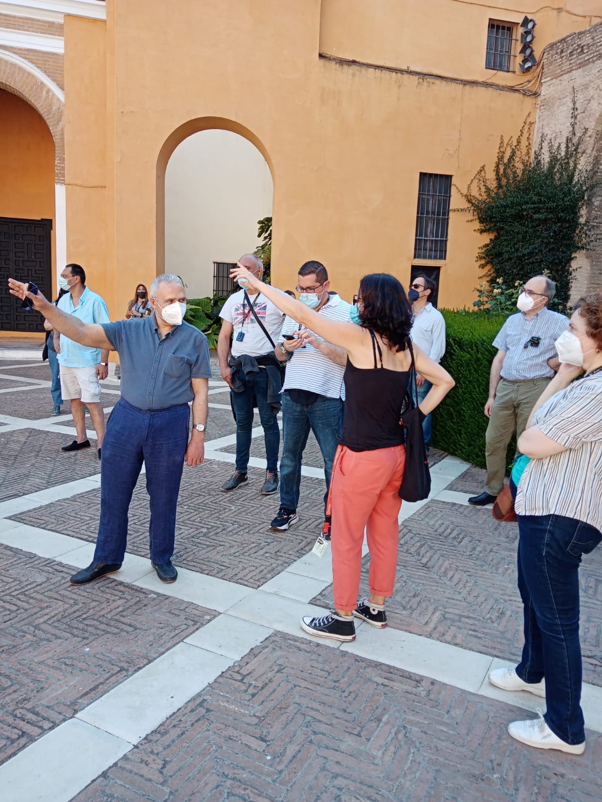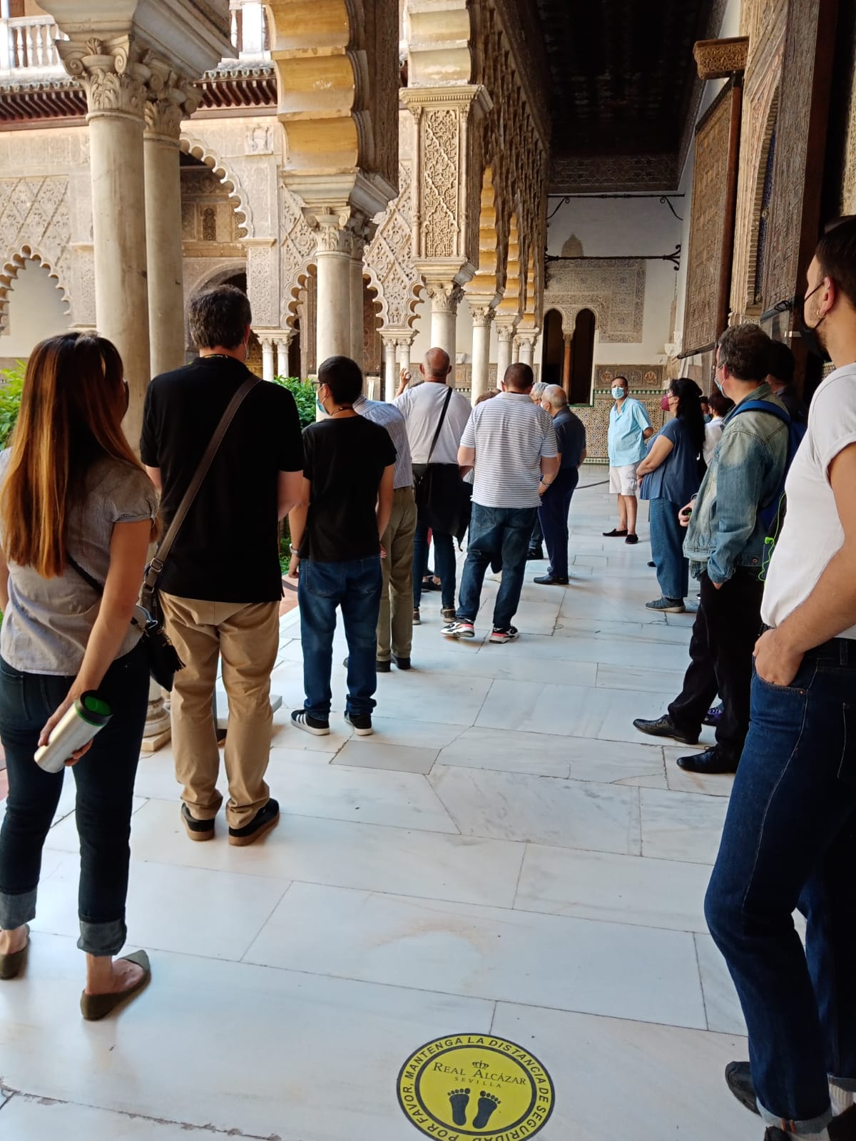 Una preciosa tarde de primavera con una actividad que según Ignacio Rafael, uno de los participantes, ha resultado «una visita histórica, florida, monumental, una preciosidad». El grupo ha estado compuesto por 22 personas que han visitado junto a una guía turística el Real Alcázar de Sevilla, que es un conjunto palaciego amurallado construido en diferentes etapas históricas. El palacio original se edificó en la Alta Edad Media, y hoy se conservan algunos vestigios de arte islámico, un espacio palaciego mudéjar y otro de estilo gótico.