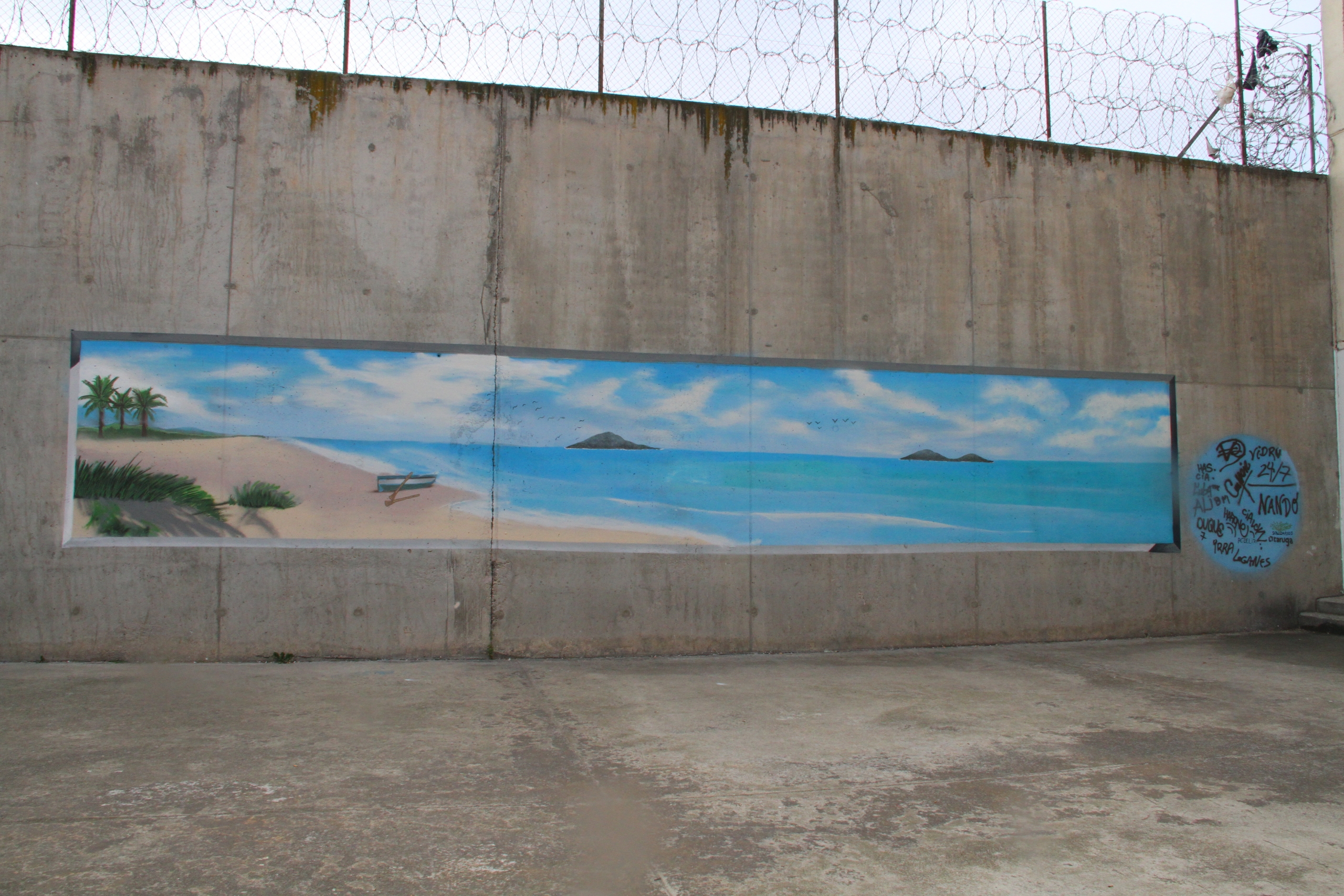 Presos de Valdemoro pintan una playa gigante en el patio de la cárcel fomentando el arte como una forma de libertad.