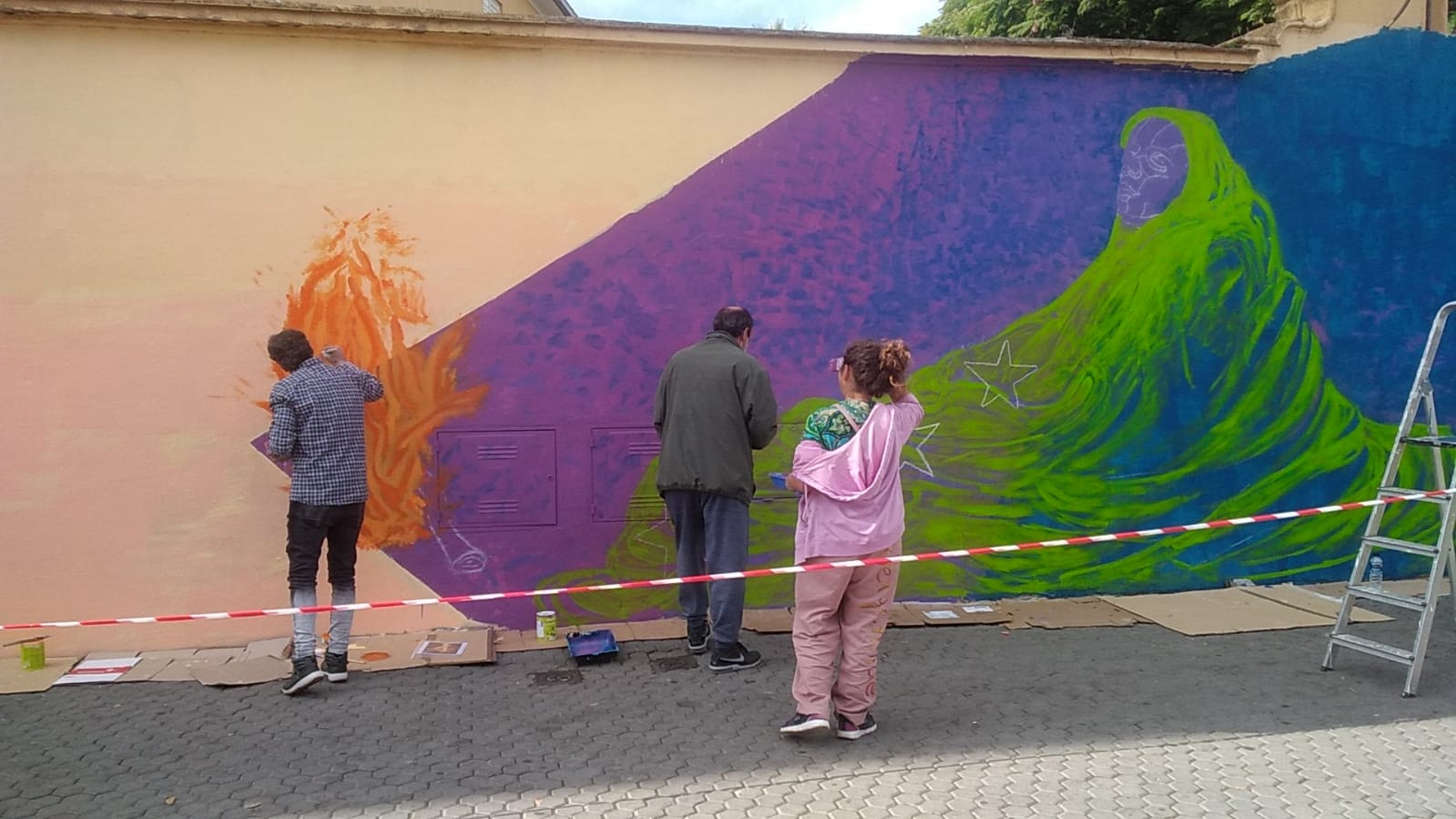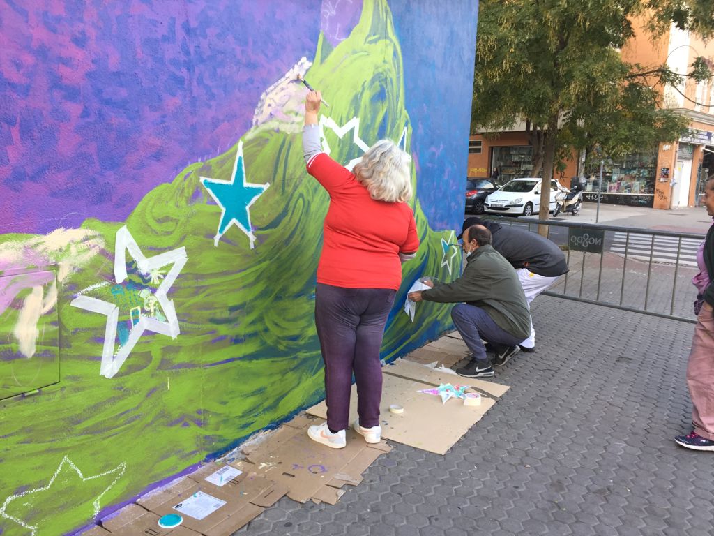 Mural. Coordinado por Tamara de la Montaña. Realizado en la fachada Centro Cívico San Fernando. Jueves 25 de noviembre.
